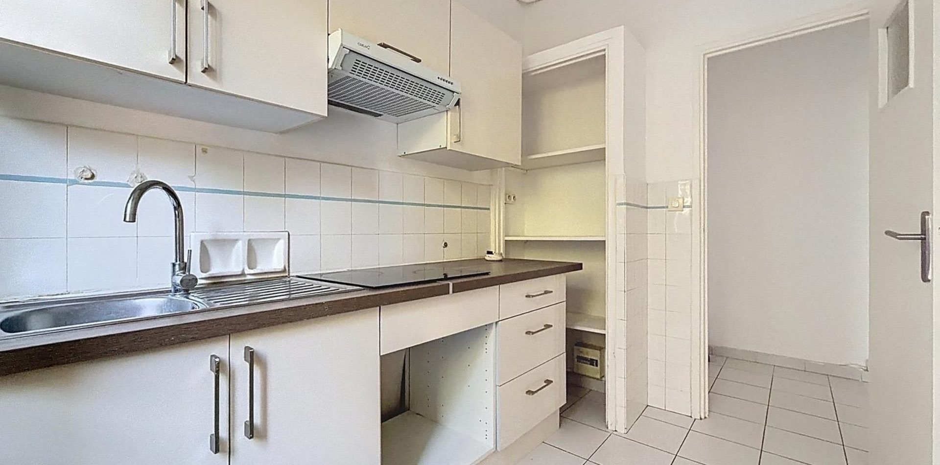 L’appartement se compose d’une cuisine indépendante semi-équipée en bon état, d’une salle de bains avec WC, et d’un espace de vie lumineux offrant de belles possibilités d’aménagement.