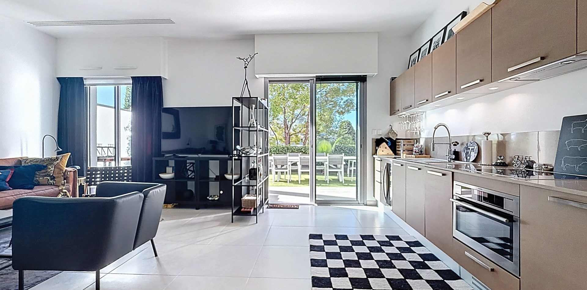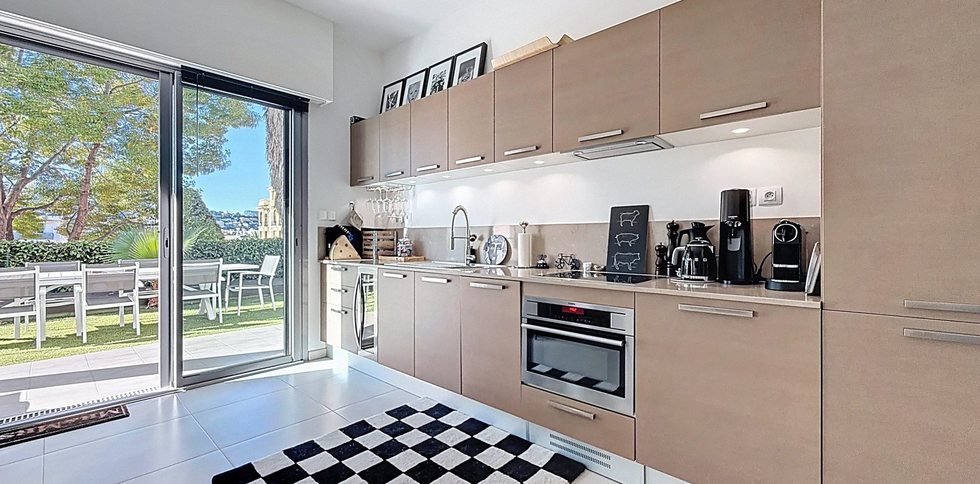 Exposé Ouest avec ses larges fenêtres coulissantes donnant toutes sur un jardin privatif entouré de verdure, ce havre de paix sera parfait pour une vie privilégiée dans une copropriété luxueuse bénéficiant de tout le confort moderne, ou pour un pied à terre sur la Côte d’Azur dans des conditions idéales et relaxantes.