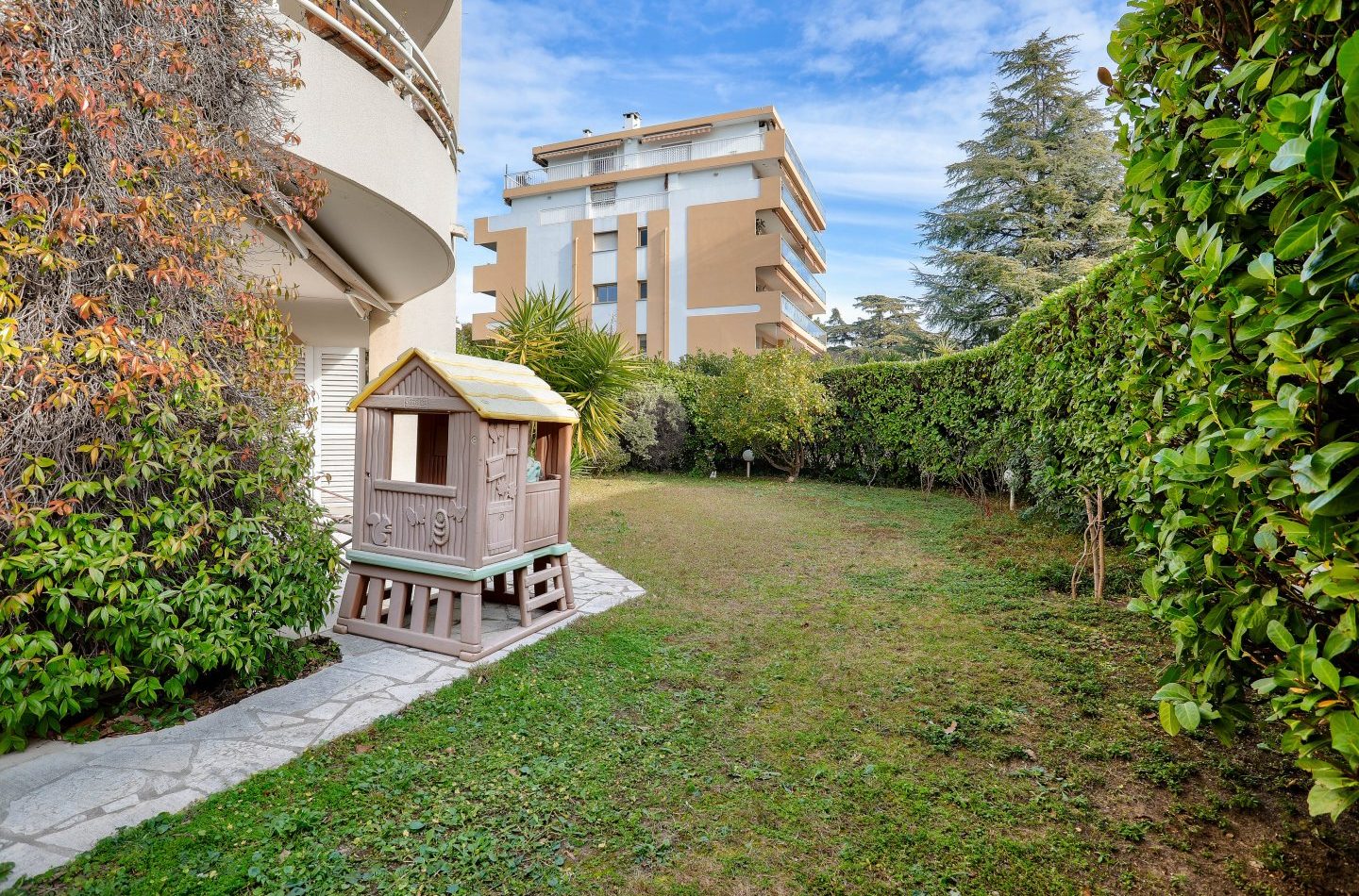 Rimiez, Royal Eden – Dans une résidence de standing avec gardien et piscine, nous vous proposons ce superbe appartement de 4 pièces, d’une superficie de 108,13 m², situé en rez-de-jardin surélevé, avec une terrasse de 35 m² et un jardin privé de 160 m².